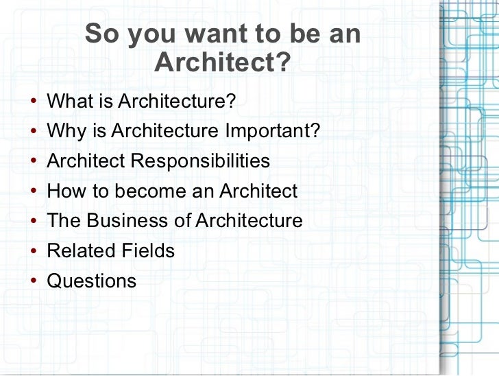 Jobs, career, salary and education information. An architect is someone who loves to design, and is specifically trained and licensed to work on the planning find your perfect career careerexplorer has helped millions of users discover new careers. Finding your dream job starts with. The level 7 architect apprenticeship provides students with the opportunity to complete a part 2 and a part 3.